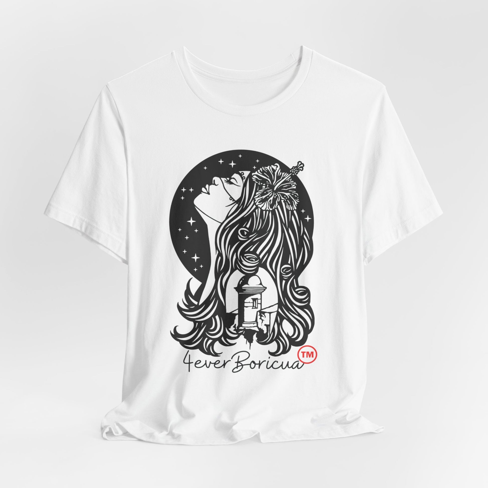 Show your Puerto Rican Pride with this beautiful unique 4everBoricua™️ design: "4everBoricua Woman". Perfect outfit for daily use, events, #Chinchorreo #PuertoRicanParade #Sanse #JunteBoricua #SalsaFestival #Desfile, travel outfits, beautiful pictures and to make Perfect Gifts for Puerto Ricans. White. Available in different colors at store. Excellent quality. Sizes XS to 5XL. Many others beautiful original creations in our store www.4everboricua.com
