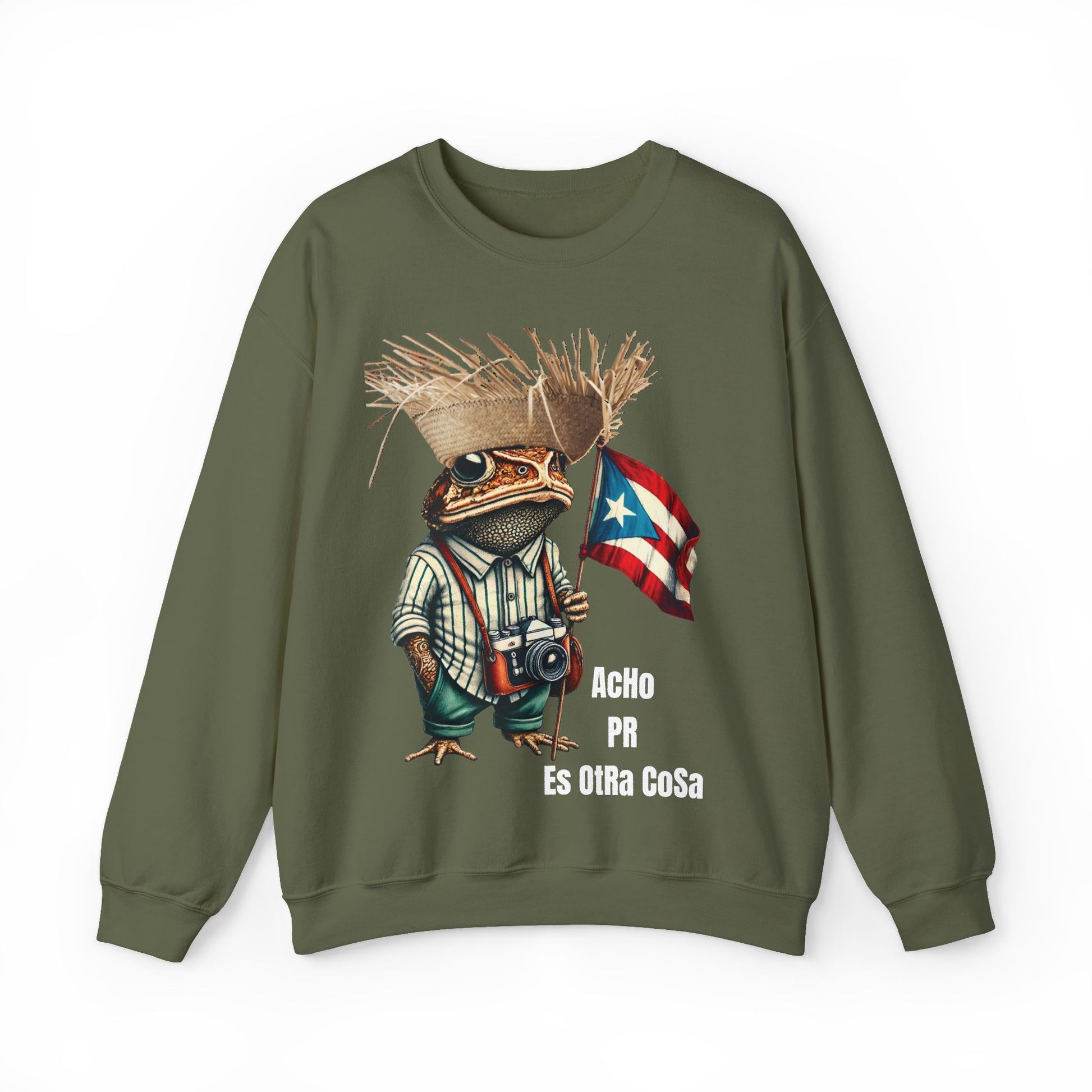 ACHO PR Es OTRA Cosa Puerto Rico Sweatshirt | Boricua Pride Unisex Military Green Crewneck | Sapo Concho 4everBoricua Exclusive Design