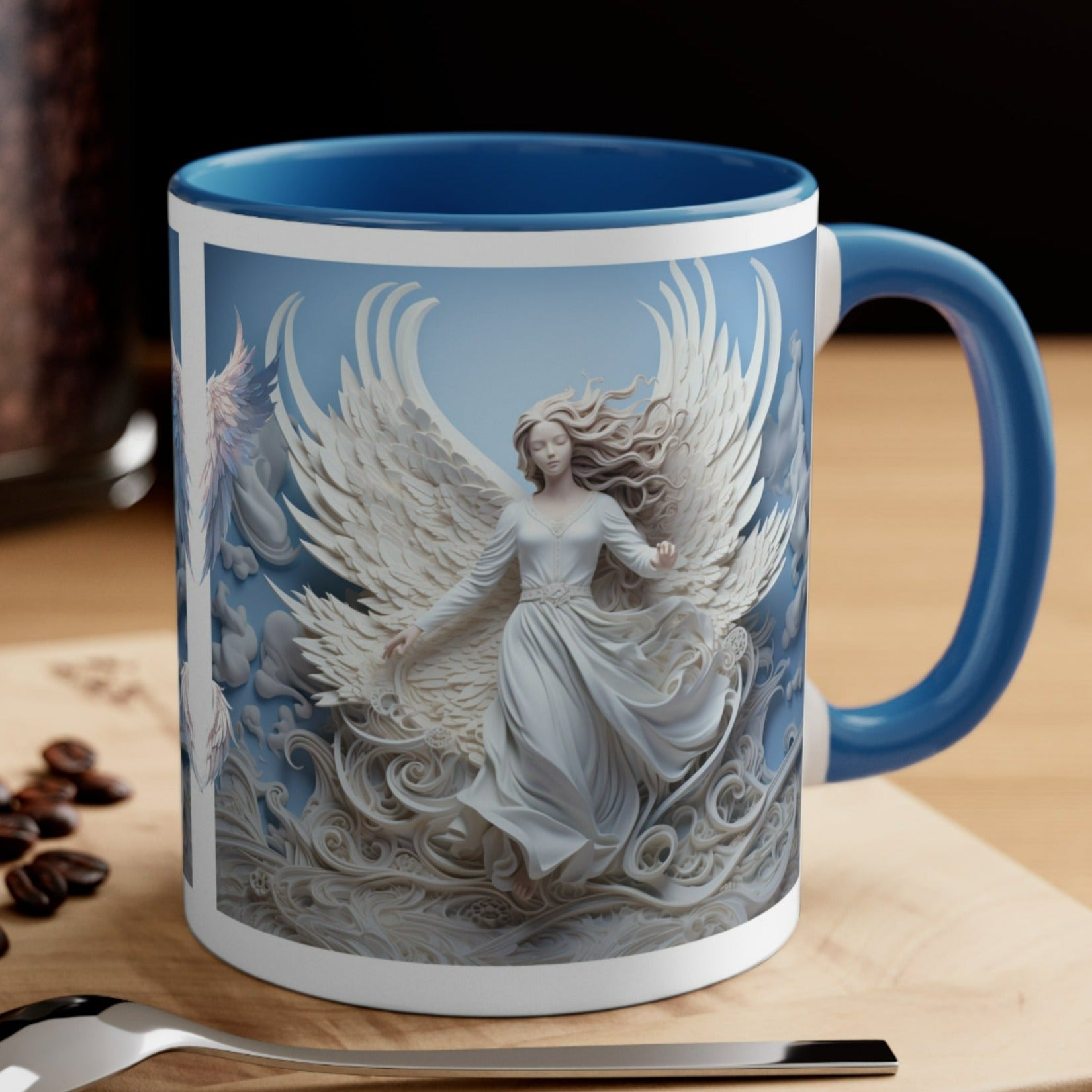Enjoy your favorite drink or decorate that special space with this beautiful ANGELICAL MUG, designed exclusively for MUGSCITY 23, best online store or original, unique and 3D quality mugs. 11oz., microwave and dishwaher safe. Perfect for special gifts. www.mugscity.com