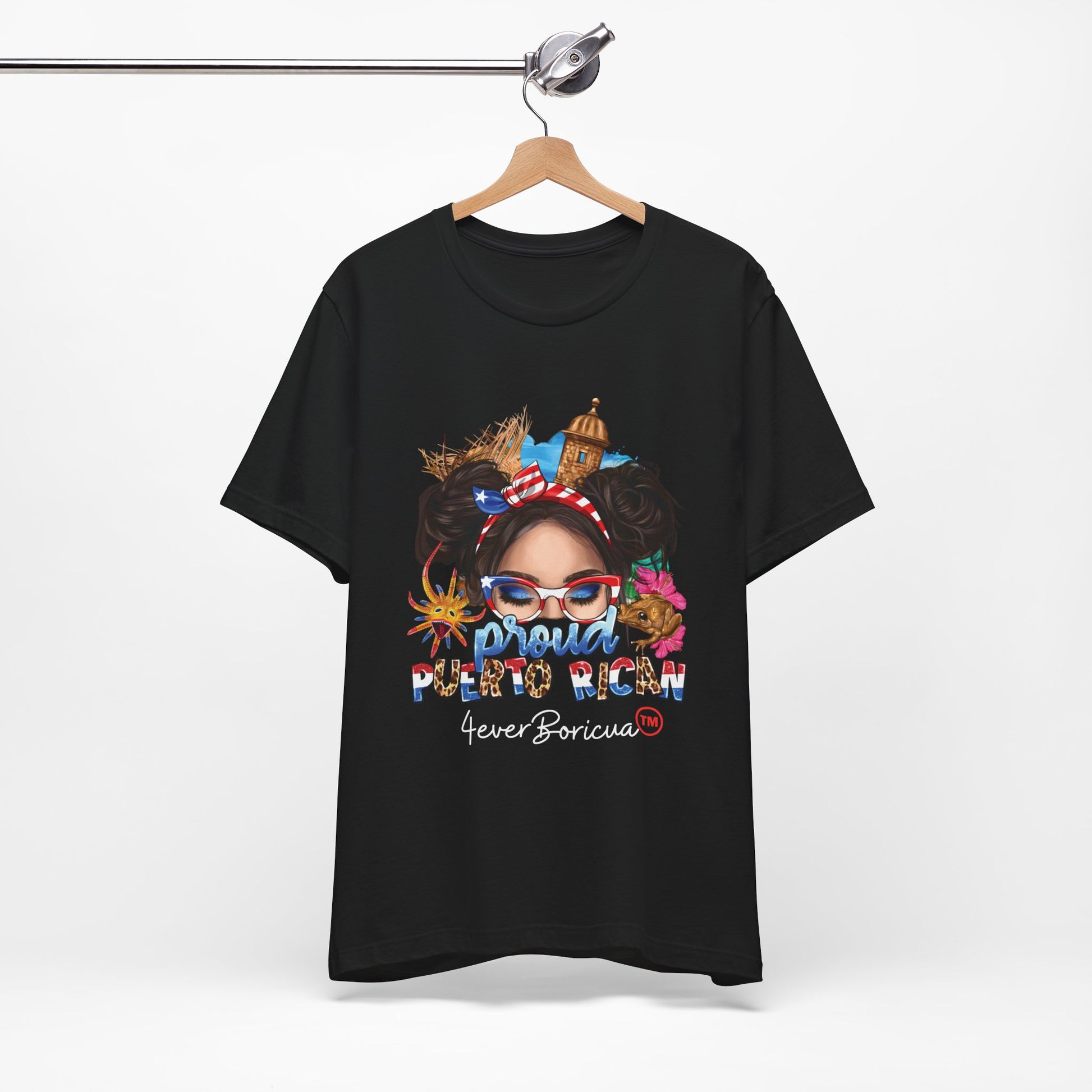 Show your Puerto Rican Pride with this beautiful Puerto Rico shirt of 4everboricua™️ with the message: "PROUD PUERTO RICAN" with Puerto Rican elements as the flag colors, coqui, El Morro and others. Excellent for personal use, events, beautiful pictures and as a perfect gift for Puerto Rican. Color BLACK. Sizes from XS to 5XL. Many other beautiful original Puerto Rico Shirts in 4everboricua.com