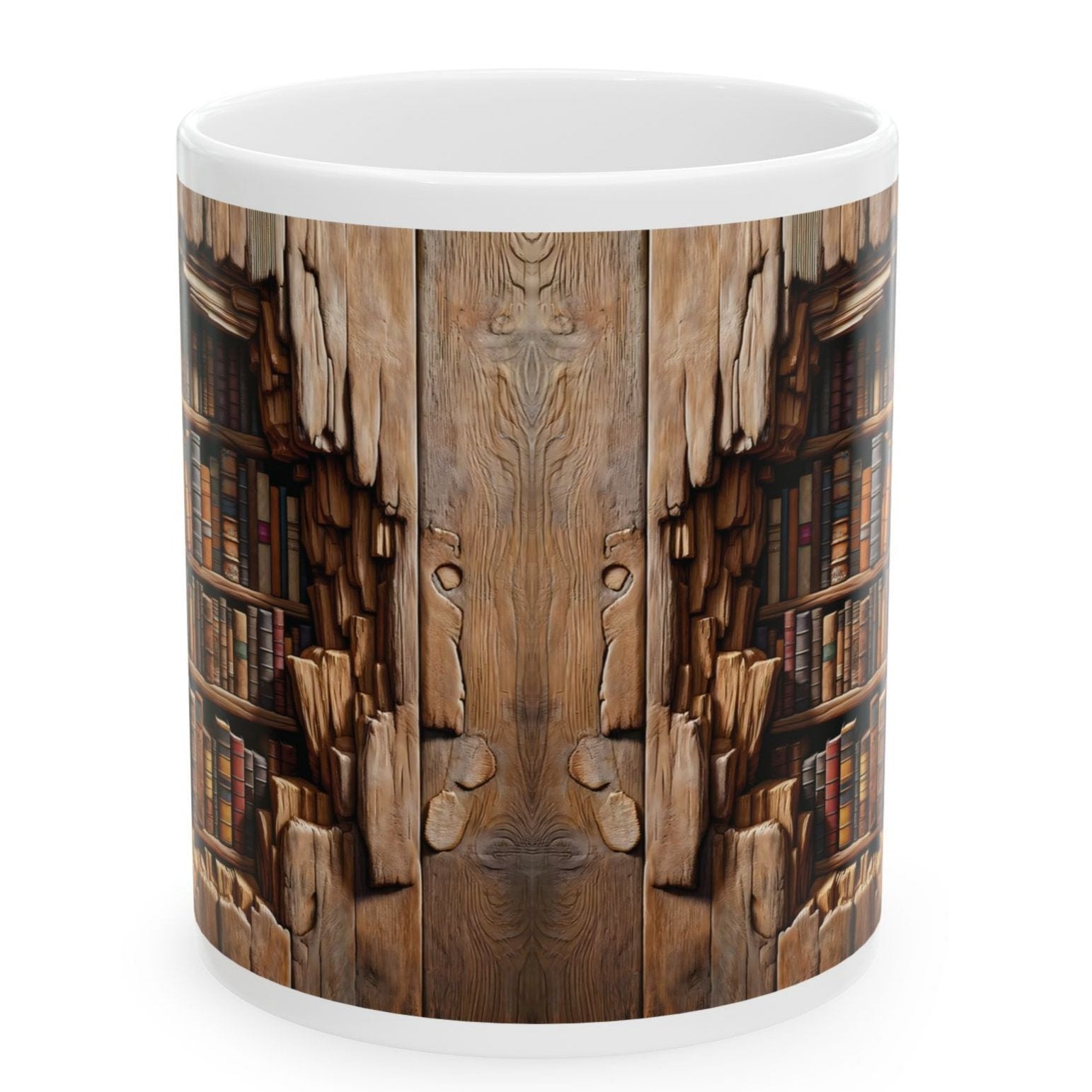 Book Lover Ceramic Cup Coffee Mug - 3D Wood Library Image - Mugscity 23