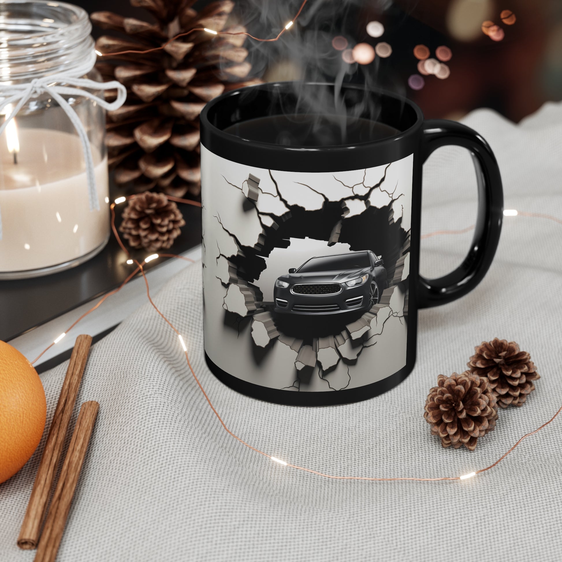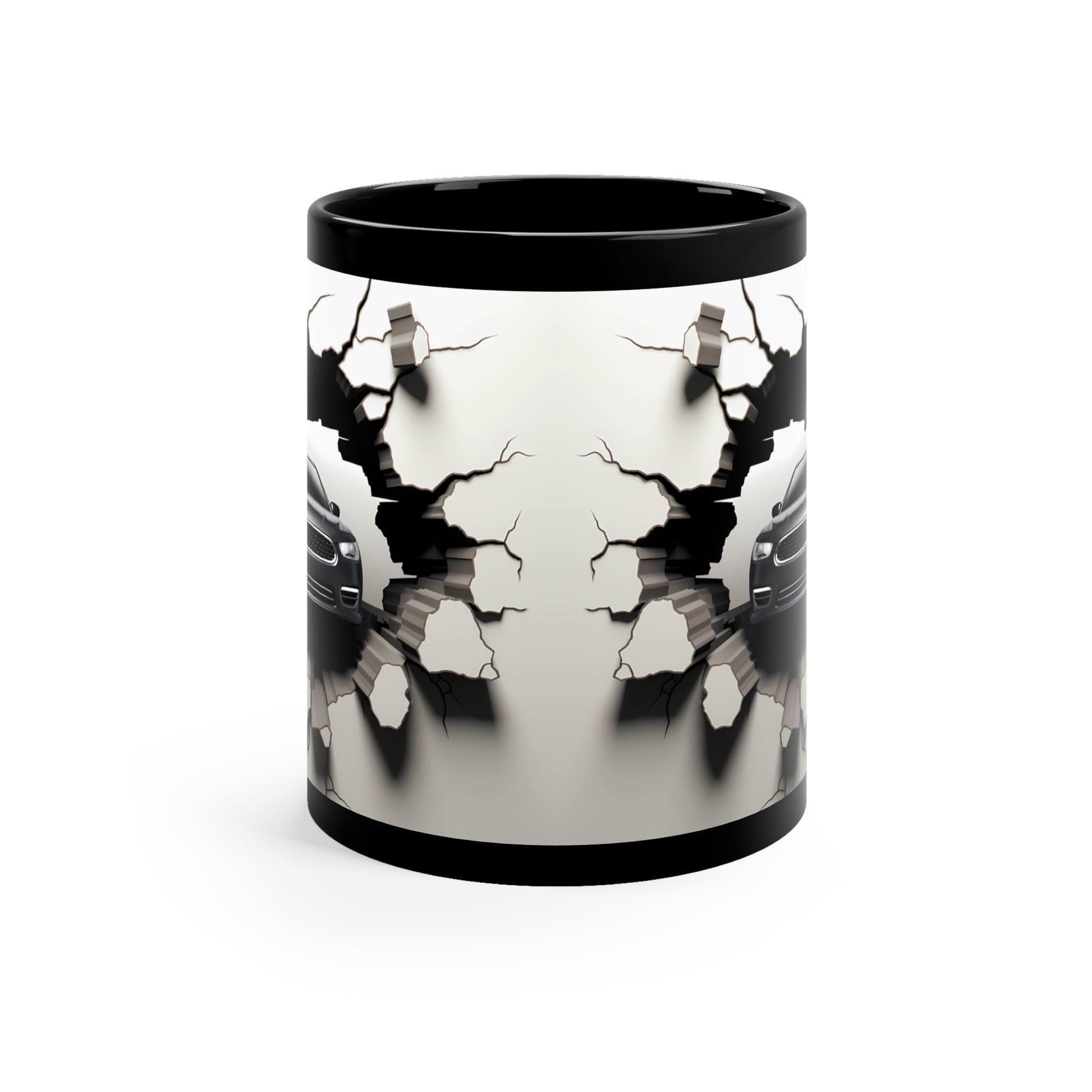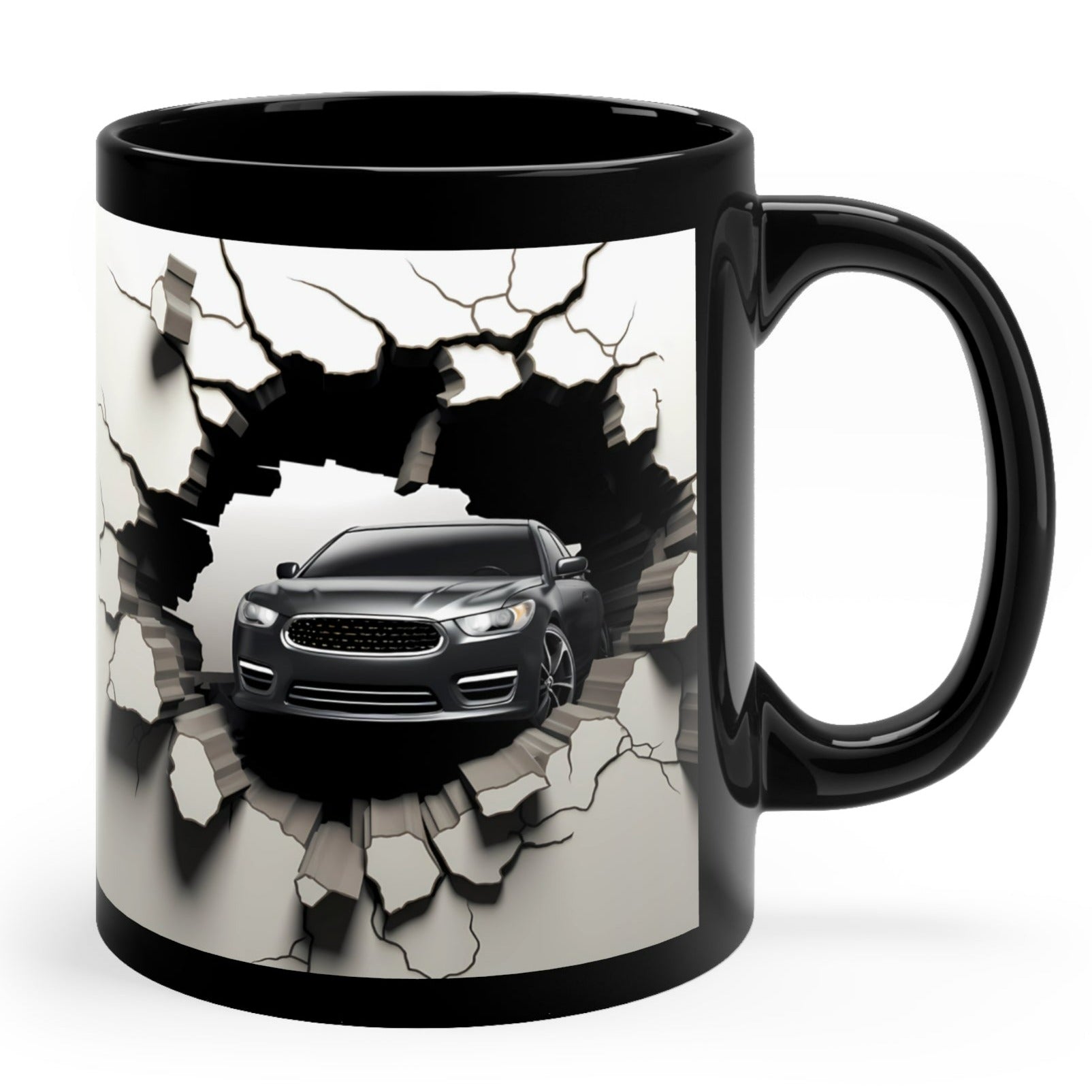 FREE SHIPPING! Strong Glossy Black Mug. Make every sip special with our unique 3D CAR IN A HOLE MUGSCITY23 ceramic mug — designed to add charm to your coffee, tea, or any hot beverage moment.