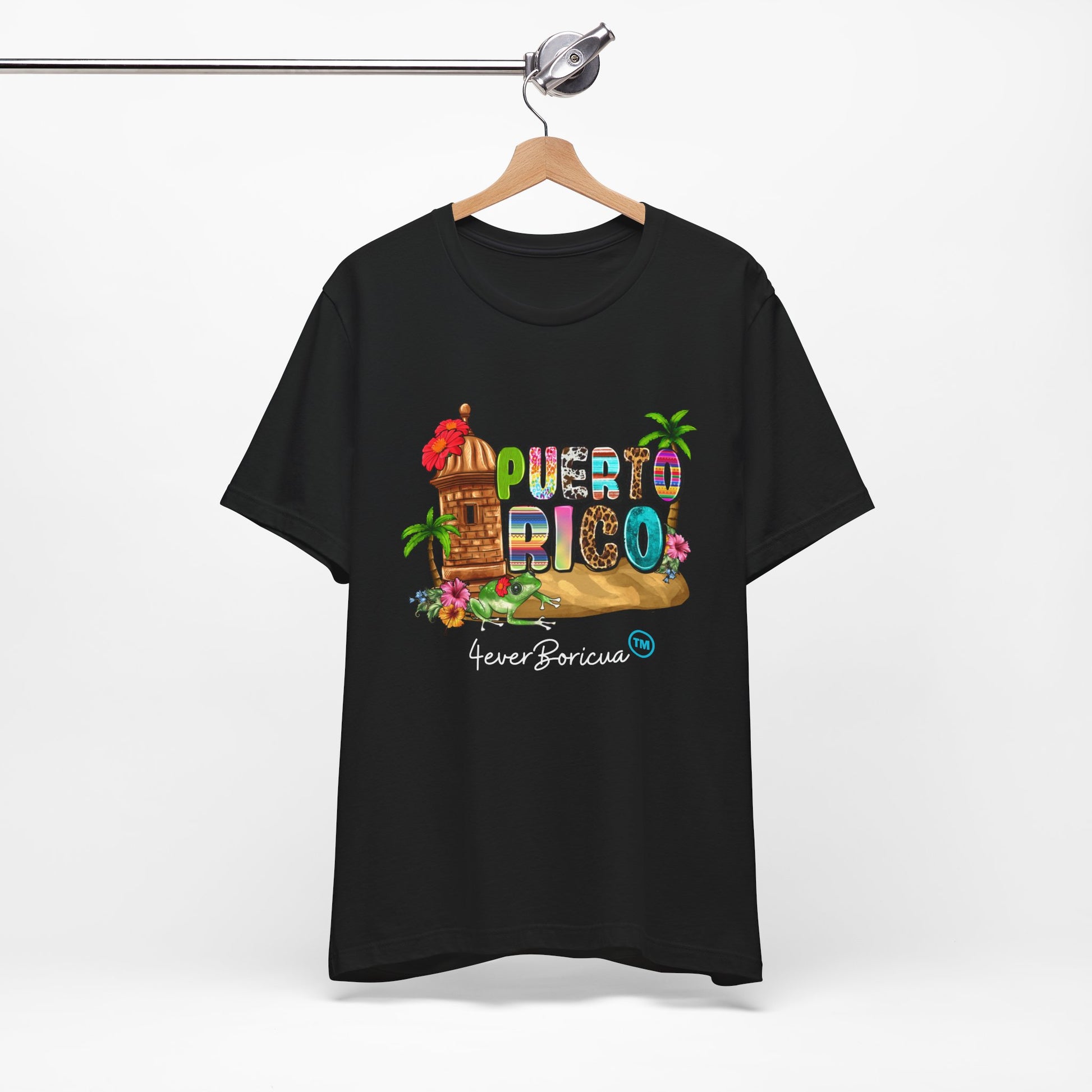 Show your Puerto Rican Pride with this beautiful colorful Puerto Rico shirt of 4everboricua™️ with Puerto Rican elements as El Morro, Maga flowers, Puerto Rican coqui and others. Excellent for personal use every day, events, traveling and as a perfect gift for Puerto Rican. BLACK Sizes from XS to 5XL. Available in other colors with many other beautiful original Puerto Rico Shirts in 4everboricua.com