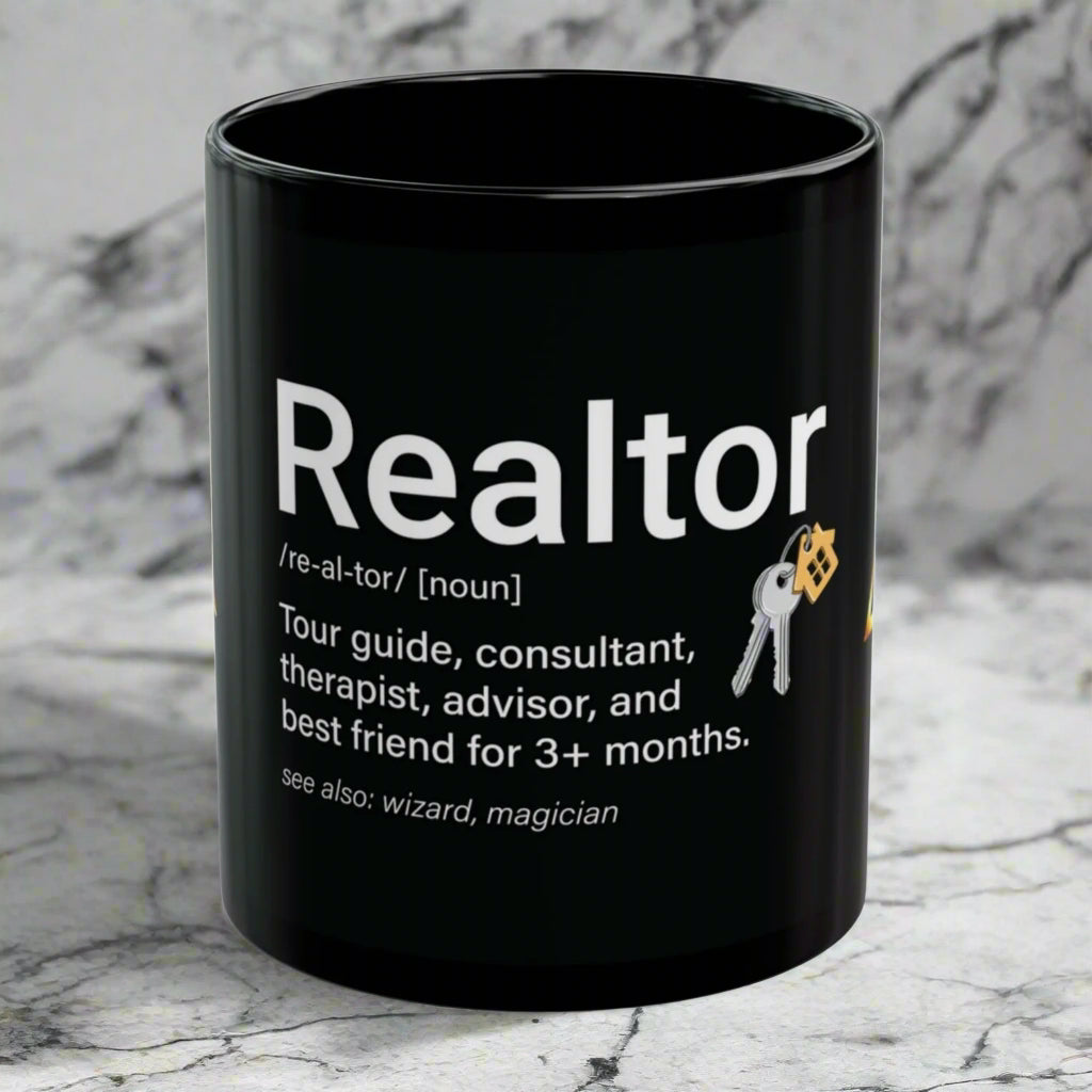 This creation is the perfect mug for Realtors to enjoy a favorite drink or to decorate a special place. Excellent for gifts and to say "thank you" for their great job to your Real Estate Agent. Designed Exclusively for MUGSCITY23, best online store of original, unique and 3D quality mugs. 11oz., microwave and dishwasher safe.